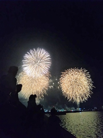 心臓に響く花火の音と、潮の匂いは夏の風物詩ですね。楽しい時間を過ごすことができました。